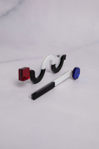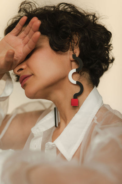Inspired by the iconic Memphis Group of Milan, the Maxi Memphis Earrings celebrate bold geometry, playful color contrasts, and fearless asymmetry.